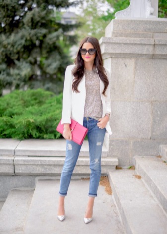 Stilettos can be easily combined with jeans. Many girls prefer cropped skinny jeans. If you prefer to wear shoes with thick heels, it is worth wearing them with narrow-cut trousers.Only tall girls can afford an ensemble of wide trousers and thick-heeled shoes.