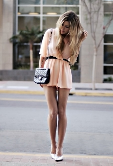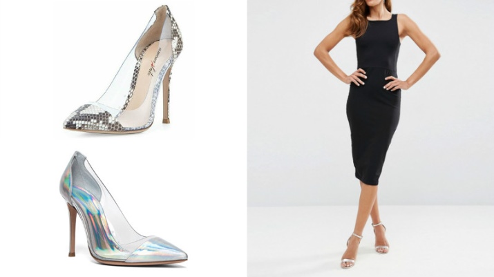 A great choice are silver pumps. They look harmoniously with tight-fitting dresses, as well as with A-shaped silhouette models. With high-heeled shoes, dresses of different lengths can be worn, from mini to maxi.