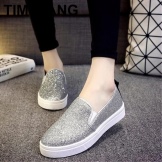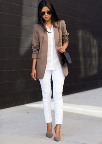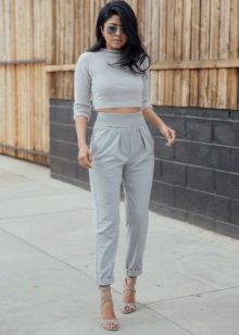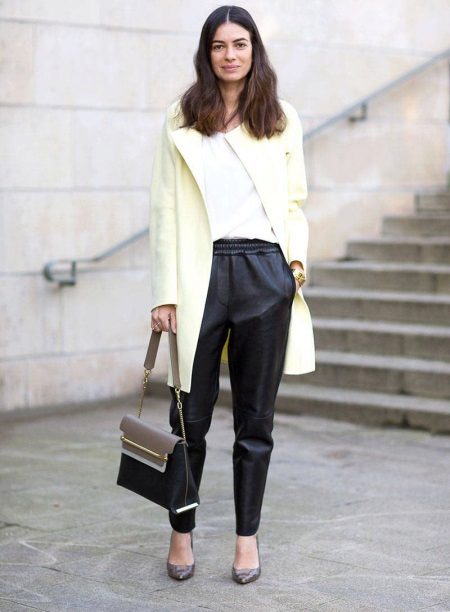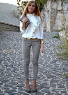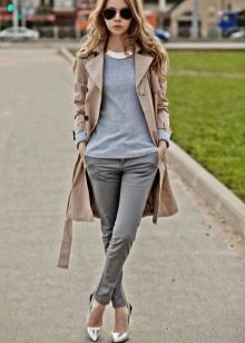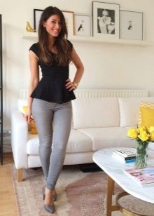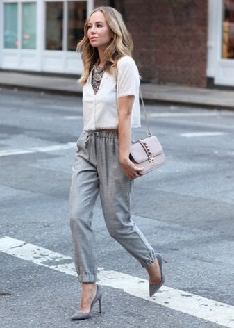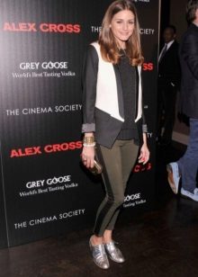 With gray lacquered boats of variations on the theme of a bright image countless. In this case, it is proposed to wear with black pants with an elastic band made of leather. Immediately a bright, extraordinary charismatic image is set, which can be supplemented with a free snow-white top and a lightweight coat without a lining. In the afternoon, in such a comfortable outfit, you can go to a business meeting, and in the evening, add picturesque accessories and go to a fun party.