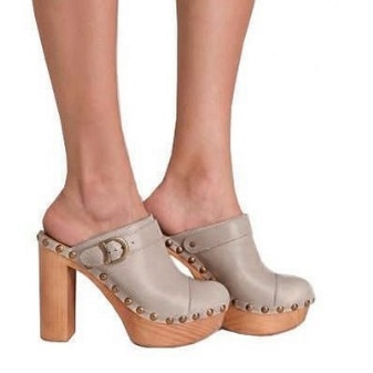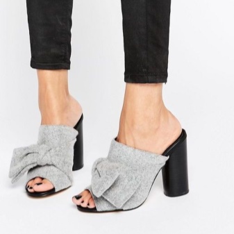 A convenient alternative between sandals and shoes are mules - shoes with a closed toe without a heel. Mules can be in heels and solid soles. A variation of the mule is the logs on a wooden platform with rivets.