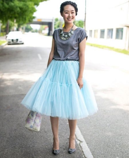 In combination with cold blue and violet colors, a strict laconic image is obtained. Gray shoes “balance” the bright clothes of red color and perfectly complement clothes of yellow and green shades. And the combination of lavender and gray is the hit of the season.