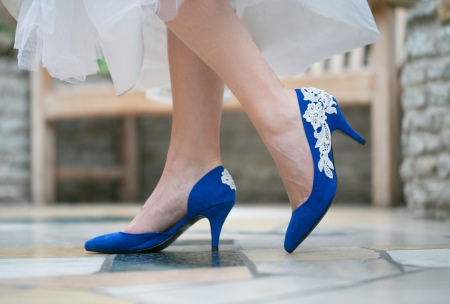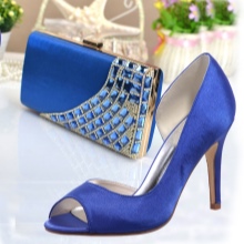 Unusual and bright blue shoes with textile trim look very interesting and attractive.Such shoes have a rather serious drawback: satin models attract street dust and dirt. These shoes look chic and are suitable exclusively for a chic social event in tandem with a chic luxury dress.