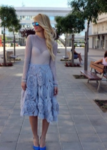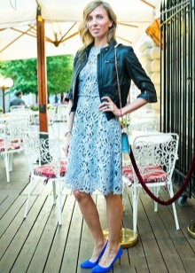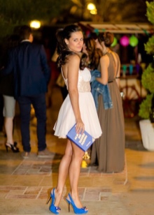 Blue high-heeled shoes are perfect for a festive evening outfit. Chic dresses of various lengths of blue, white, black, red and pink will be ideal to combine with such shoes. Bold fashionistas may be interested in an unusual combination of blue shoes with an orange or yellow outfit. Shiny beads, pendants and bracelets matching the color of shoes will effectively complement the festive look and emphasize the bright personality of the lady.