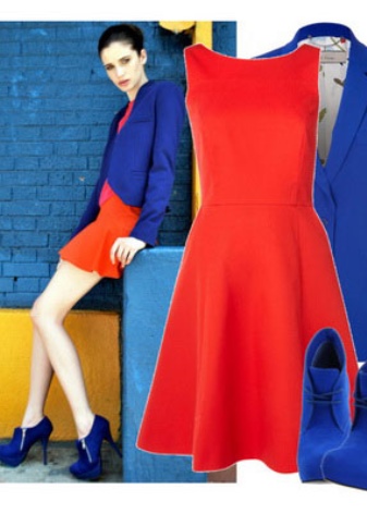It is easy to create a bold and hot image by combining two seemingly completely different colors in clothes and shoes: blue and red. A red dress and blue patent leather shoes will not leave the young lady unattended, but it is worth remembering that it is not worthwhile to overload such an outfit with bright accessories. Such combinations as a blue dress and a thin red strap, or vice versa, will perfectly emphasize a slim figure.