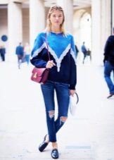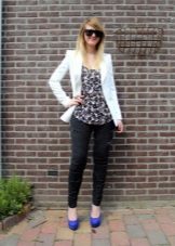Brave personalities like to experiment with color schemesTherefore, under blue shoes, they often choose clothes in rich prints. Such an unusual combination will help to create an interesting bow in ethnic style.