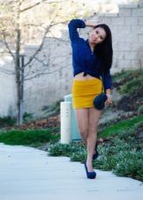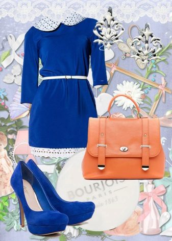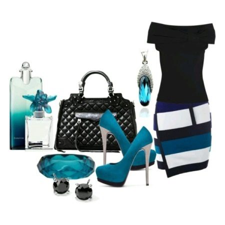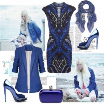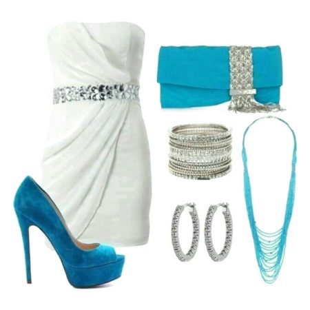 To create an evening or formal look, you can wear a short dress with blue stilettos. It is better to give preference to shoes in a saturated shade of blue. Jewelry or a belt matching the shoes will help to create a harmonious bow.