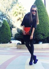 Special attention should be paid to the choice of color and texture of tights. Dark tights of dense texture are better suited to models of shoes of dark blue color. Light or bright blue shoes look great in combination with thin body tights. It is better to refuse color stockings, as well as tights with large patterns.