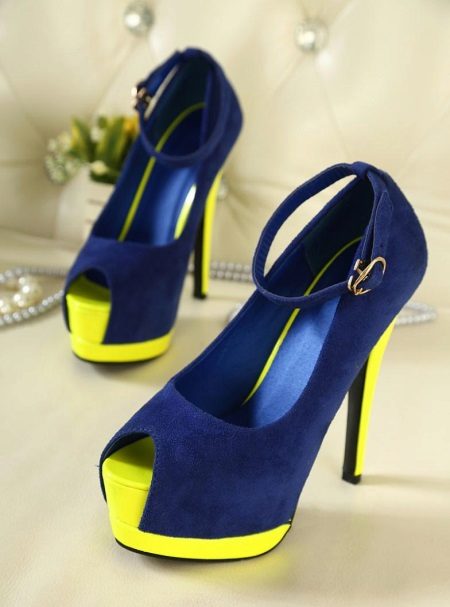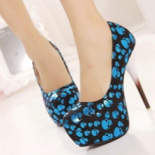 High heel shoes are very popular. They give an image of elegance and charm. Manufacturers offer different models. Today, the trend is blue high-heeled shoes with a flat platform, as well as a combination of studs and a thick platform. Each option emphasizes the harmony of the legs, visually lengthens the silhouette.