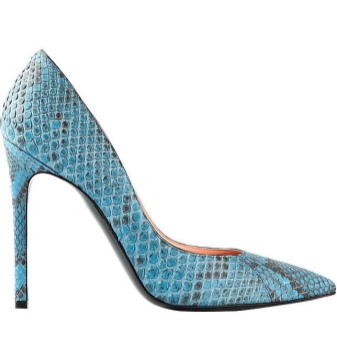 Many designers in the latest collections pay special attention to blue shoes. For example, Italian brand Sergio Rossi introduced azure blue boats in a classic style with an elongated toe. French designer Barbara Bui in the new collection of shoes she used a “snake” print to decorate cornflower blue boats.