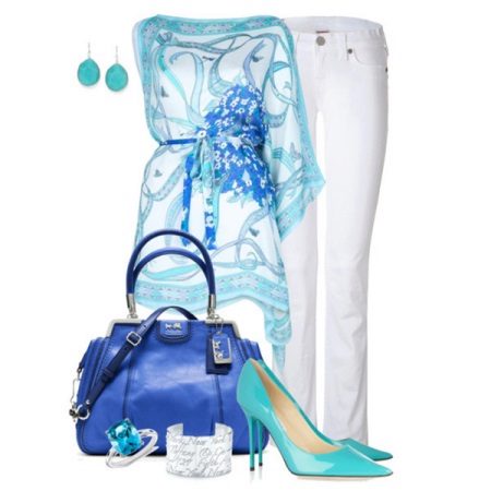 Blue shoes look great in tandem with white clothing. This combination is lightweight, airy and clean.To create a romantic, feminine bow, the best solution to blue shoes of blue color will be outfits in beige or pink.
