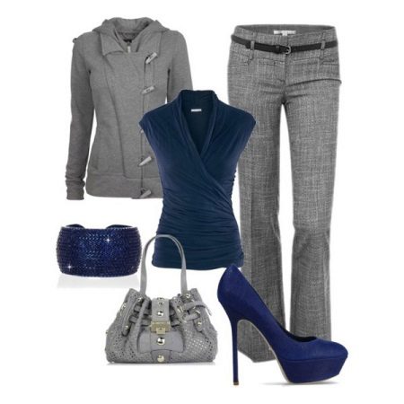 Classic styles include pumps. They look interesting and elegant in a blue color scheme. They can be combined with clothing in black, white or pink.