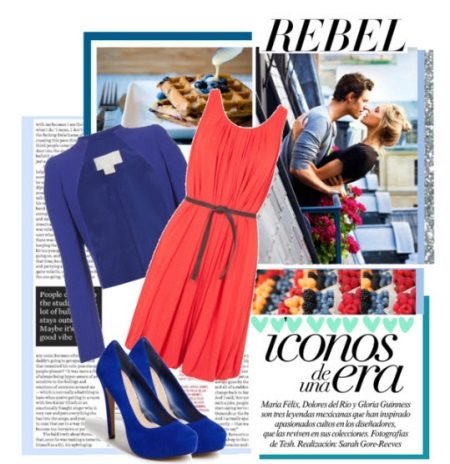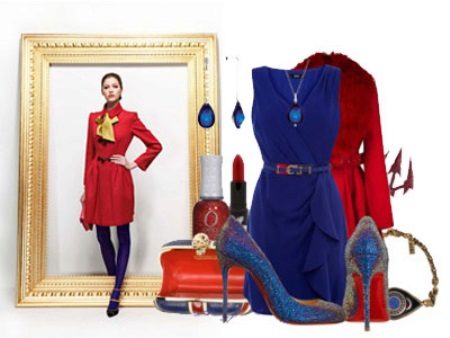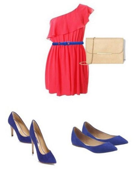 Blue-red shoes look spectacular and bright. Brave girls prefer a red outfit in combination with such shoes. To emphasize the waistline, a thin blue belt is an excellent solution.