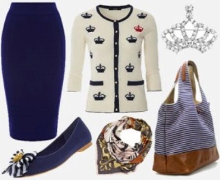 The combination of red and blue can only allow confident girls. With a suede slippers in ultramarine color, a summer scarlet dress made of lightweight midi length fabric looks beautiful and spectacular. An irresistible bow is complemented by a shortened jacket with long sleeves to match the shoes. In this outfit, you will definitely attract the attention of men thanks to the romantic and feminine bow.