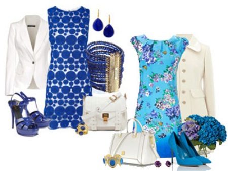 You can embody a luxurious monochrome lookwearing a dress in blue, but you should know some nuances. For example, the shade of the dress should be a tone lighter or darker than the color of the shoe. A combination of dress and shoes of different textures looks spectacular. It is better to refuse long dresses or skirts, as they will cover the shoes and hide their charm and beauty.