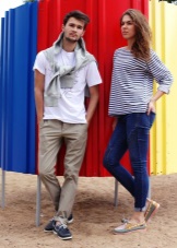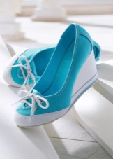 - Sports shoes with wedges look good in marine looks. Also under them you can wear dresses made of airy fabrics and sun-flared skirts.
