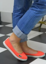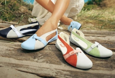 - Shoes-ballet shoes is perhaps the most comfortable shoes. It is so practical and comfortable that it is great for outdoor activities and long walks. In this necessarily there is a special insole, which is responsible for creating comfortable conditions. There are even models with orthopedic insoles. Another mandatory element is perforation, which performs a decorative and practical function. There are two varieties of this shoe: classic leather models or sports, more close to sneakers, most often these are fabric models with laces or Velcro.
