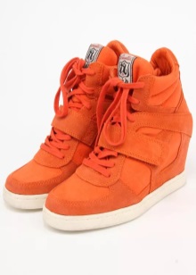 - Shoes in a sports style with wedges are the most popular and sought-after among fashionistas of all ages. There are many interesting models, but we will highlight the most popular. Sneakers from Isabelle Marant can be called crookedly the most popular sports shoes. Outwardly, they are more like urban sneakers, but have a hidden wedge. Interesting shoes are models that resemble Converse or leather Nike.Under the Tommy Hilfiger brand, shoes are produced that are as soft as ballet flats and graceful like boats.