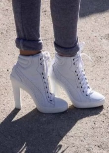 - The presence of a heel does not make shoes elegant, on the contrary, such shoes turn out to be catchy, aggressive and defiant. So the image must be matched accordingly. Any jeans and leather clothes will be relevant.