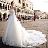 An ideal option for a princess dress - models decorated with floral decor. These can be lush roses, barely blossoming peony buds, royal lilies, violets and other flowers. Flowers are made of lace, satin, silk or laid out with beads or rhinestones.