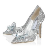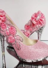 A fluffy dress with a crinoline or train, embroidered with a corset and a fur cape requires matching shoes. For example, crystal shoes, like Cinderella’s. Fortunately, the modern variety of decorative ornaments allows you to easily create elegant shoes not a bit inferior to the shoes of a fairy-tale heroine.