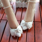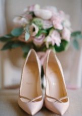 High-heeled shoes remain the undisputed leader among models of wedding shoes. Such shoes look equally cool with lush crinolines on the floor, and with short dresses. And if the shoes are made in the classical manner, then they can be worn more than once and after the celebration.