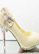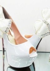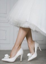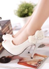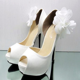 If wedding attire selected in retro style, then platform shoes or without a heel are perfect for him. Especially stylish, these models look with lush, short dresses. To complete the image, shoes can be decorated with decorative elements.