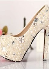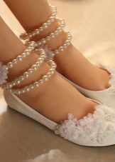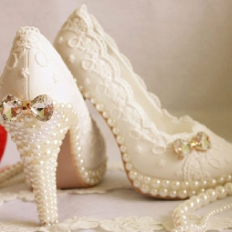 In addition, snow-white or delicate pastel lace, small and large pearls, stones, sequins, pieces of fur or feathers are used to decorate shoes.