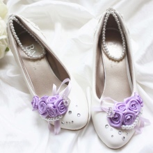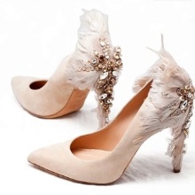 All kinds of materials are used to decorate wedding shoes.