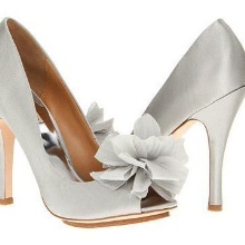 A variety of materials can be used for decoration. The shoes decorated with the same fabric from which the dress itself is sewn are especially stylish. Most often it is satin, dense silk, guipure. Sometimes pieces of fur and even feathers are used.