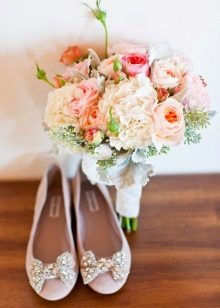 - Venue of the wedding ceremony. This point concerns non-traditional options for weddings, for example, on the seashore, in nature, outside the city. In this case, elegant ballet shoes, elegant sandals or light sandals will become a worthy alternative to elegant heeled shoes.