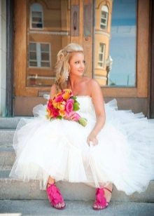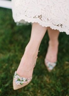 White shoes are also suitable for such a dress, but you can choose a more original version. For example, shoes of champagne, ivory, cream brulee, as well as peach, lavender, mint, pale pink.