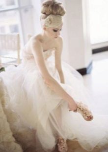 If a delicate model in the style of “Empire” or a Greek dress is chosen as a wedding dress, then shoes with no heels are contraindicated here. Ideal - classic shoes without a heel or on the smallest heel, wedges. In this case, special attention should be paid to the model itself.