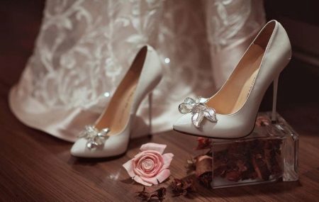 When choosing shoes for a dress, one should not forget that the model should ideally harmonize with the outfit and the bride’s image as a whole.