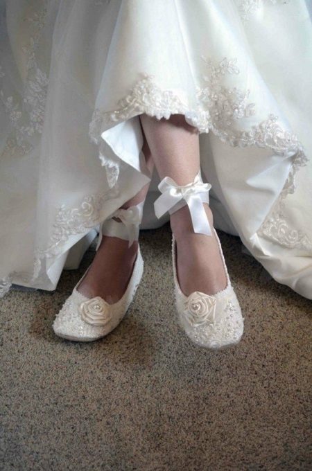 Ballet flats can be a real find for brides expecting a baby or for girls who prefer lightweight shoes without heels. Ballet shoes can also be used as a backup option for shoes for the brideif you have to spend a lot of time walking around the city, memorable places, etc.