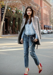 Models with thick or square heels are the most. Due to the heel, the silhouette is stretched, but with the help of its thickness the model is quite stable and comfortable to wear.