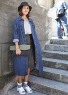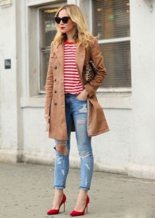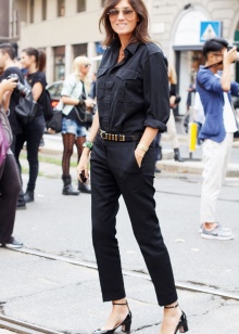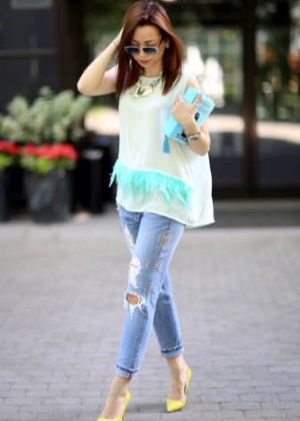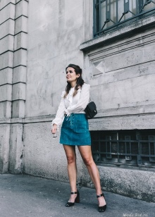 - Everyday life can also be stylish! Skinny jeans and a denim shirt to match them, go well with high-heeled menthol boats. Shoes of this shade will become the highlight of the outfit and slightly refresh it.