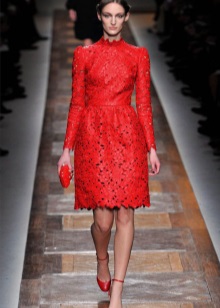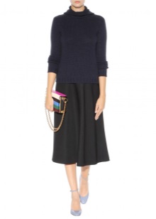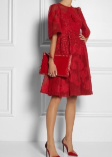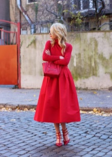Sensual red look can be made up of a red turtleneck, a flared midi skirt and red shoes with spikes of the Valentino line.