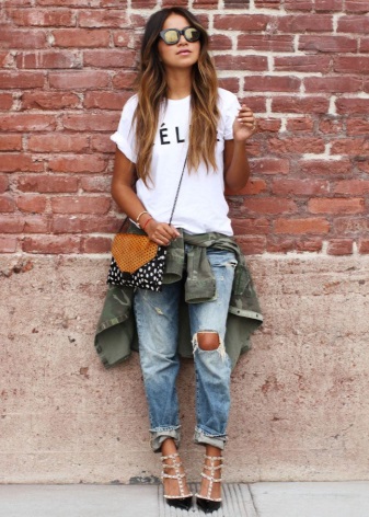 Beautifully and exquisitely studded shoes will look with fitted leather jackets, skinny skinny pants. The ideal option for combining the model would be a dress or flared skirt or pleated.