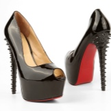 Elite designer from France Christian Louboutin continues to develop holiday models on a very high hairpin. Brand shoes are decorated with fringe and leather weaving, as well as massive crystals and spikes.