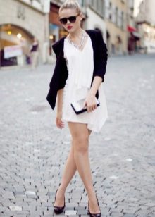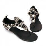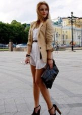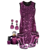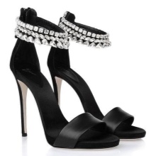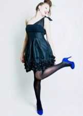 A very short dress is complemented by elegant shoes with black stones. Black color is always a win-win spectacular combination.