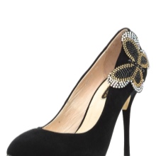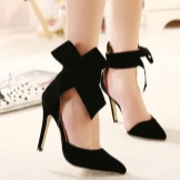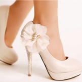 Decor is one of the key components of evening shoes, cardinally distinguishing them from everyday models.Decorating details may be present on different parts of the shoe: on the heel, cape, back or side. Modern options are originally decorated with metal fittings, as well as pearls, sparkles and artificial flowers. Shoes with lace or satin bows look exquisite. Designer fantasy also adorns evening shoes with fur and feathers.