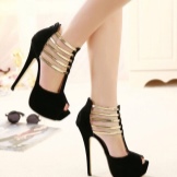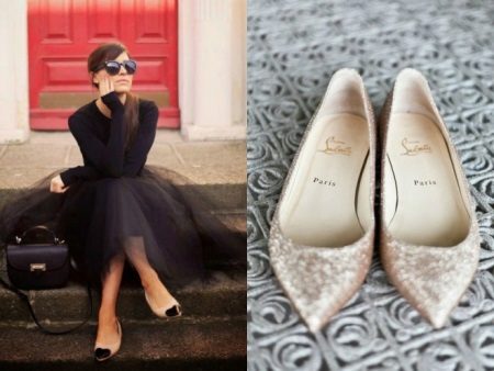 In addition, the shape of the heel also matters. A flying chiffon dress will harmoniously look with a hairpin, and a toilet made of thick materials - with shoes with stable heels.
