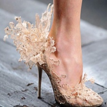 Another Italian fashion house - Dolce & Gabbana - pleases its fans with exclusive models of evening low-heeled shoes (for example, elegant lace boats with a miniature heel, wineglass).