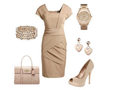 First of all, it is a beige color. Especially it is in harmony with the clothes of many colors. Evening shoes are silver and golden. The first one goes well with dresses in cold tones, and shoes of a shade of gold are more suitable for a warm palette, as well as for a black and motley evening dress.