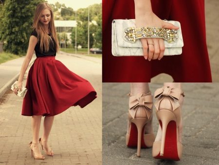 The length of the holiday dress also plays a role. If this is a mini or classic model to the knee, then give preference to the original, attracting attention models. For a long fluffy outfit, buy evening shoes with a simpler style. If you can not live without a heel, then choose an alternative on a wedge.