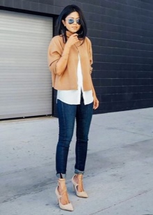High-heeled beige shoes like girls of small stature, as they will help to visually lengthen the legs, to make the silhouette slimmer. Beige color gives the shoe sophistication and sophistication. They can be combined with different outfits.
