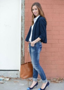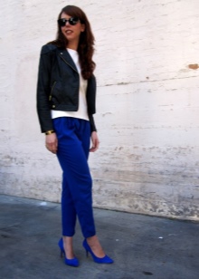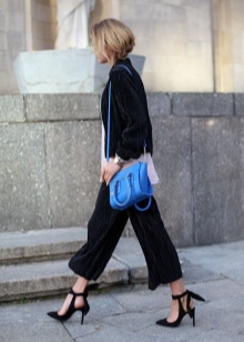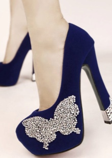 Blue patterns are often used instead of brown or black shoes. Blue shoes with heels will help diversify the image, add new colors.