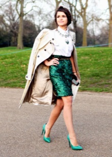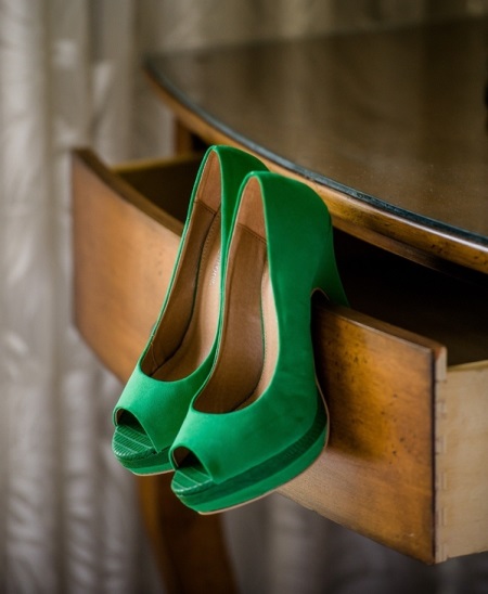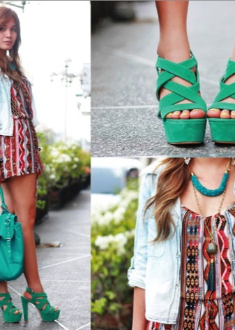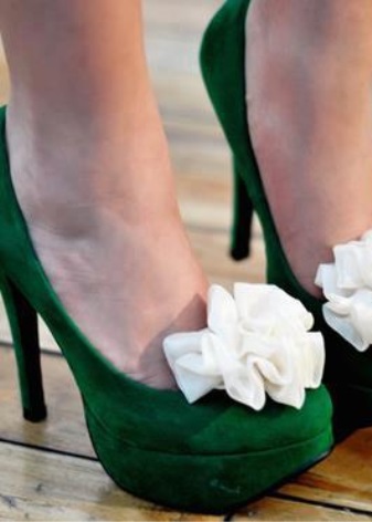 - Emerald-colored shoes are perfect for going out. They can be combined with a spectacular evening dress, romper overalls or trouser suit. Prefer along with a calm, saturated color so that it looks harmoniously with your shoes.