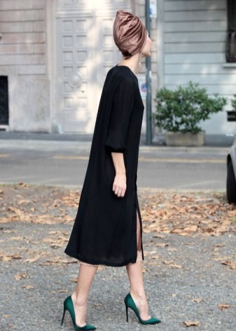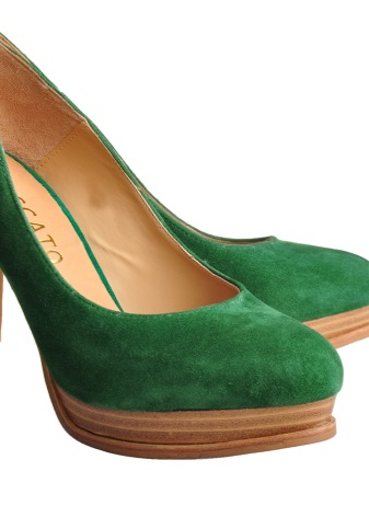 - Satin green boats will be appropriate in the office complete with a sheath dress. You can complement the image with a jacket, a thin strap in tone and a roomy business bag. The finishing touch of the image will be a light scarf that can be casually tied around the neck.