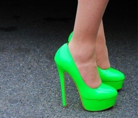 - Bright green shoes can be a key element in your look. Best of all, they will look in the company of some other thing made in the same color scheme. Well, if it is not a handbag, but a T-shirt or blazer.
